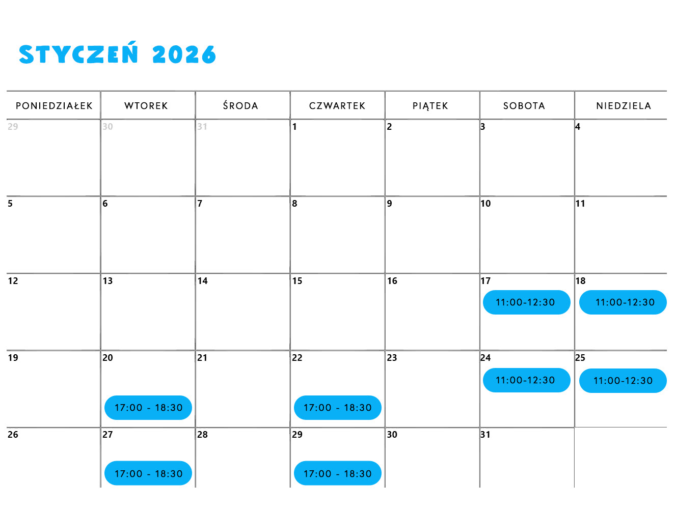 HARMONOGRAM WARSZTATÓW 2026